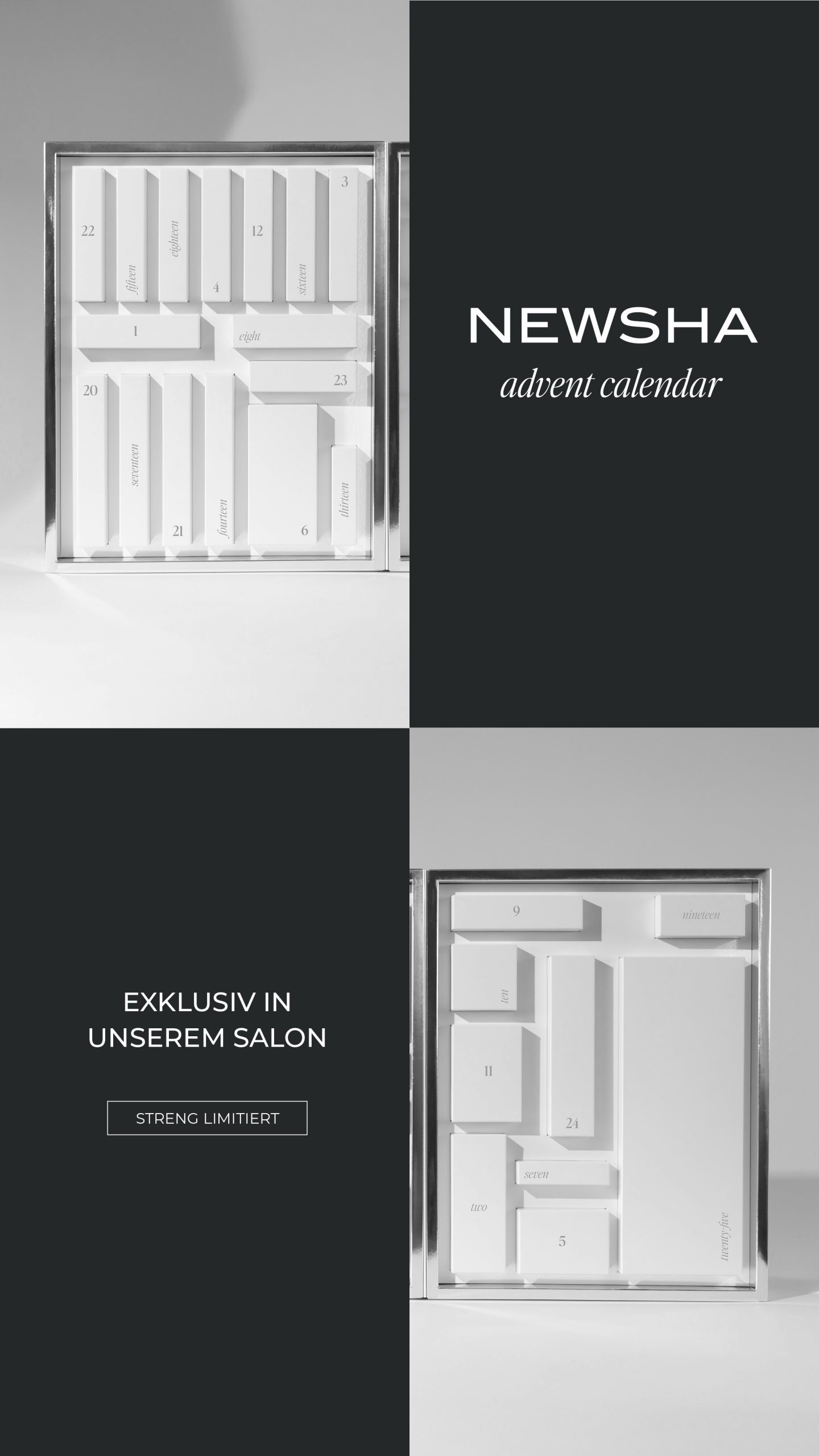 Sichert euch jetzt einen der limitierten NEWSHA Adventskalender, einfach über die entsprechende Filiale kaufen und im Salon abholen.